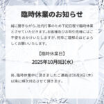 【臨時休業日のお知らせ】2024年10月23日(水)・10月25日(金)